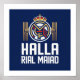 Wall Art & Décor: Ein minimalistisches typografisches Design, das den berühmten Real Madrid Satz "Hala Madrid" in einem kühlen, zeitgenössischen Schriftart präsentiert.