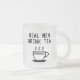 Echte Männer trinken Tee komisch Mattierte Glass Coffee Tasse. Fügen Sie Ihren eigenen personalisierten Namen oder Text hinzu. Coole Tasse für Männer. Trendy Geburtstag oder Weihnachten Geschenk Idee für ihn. Machen Sie einen für Freunde, Familie, Mitarbeiter, Kollegen, Chef, Kaffeefreund, Mutter, Vater, Angestellter, Lehrer, Trainer, Barista etc. Anpassbare Farben. Spaß für Zuhause oder Büro. Moderne Typografie-Vorlage mit dem Design der Billardbildern aus warmen Drinks. Beidseitiger Druck.