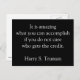 C'est extraordinaire ce que vous pouvez accomplir quand vous ne vous souciez pas qui obtient le crédit. Carte postale motivationnelle avec les mots de Harry Truman.