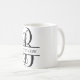 Eine klassische Kaffee-Tasse des Monogramms! Eine Spaltebuchstabe-Monogramm-Tasse, wo Sie Ihren eigenen Namen oder Text in der Spalte hinzufügen. Sie können den Schriftart, die Größe und die Farbe des Textes im Spaltebereich ändern. Ein perfektes eines netten kundenspezifischen Geschenks für Monogramm lockert auf!
