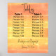 8x2 Cartes de siège pour les fêtes, mariages, anniversaires, quinceaneras et autres événements. Été Rustique Décontracté Jaune Pêche Jaune Joyeux Mellow Motif Table Siège Assignments pour 8 tables de personnes. Il s'agit de deux tables design, à un côté avec un dossier blanc (le dos est vide sans texte ni dessin sur le dos). Célébrez vos nuptiaux d'été décontractés, le renouvellement des voeux ou d'autres occasions avec cette Happy Mellow orangey jaune et rose pêche design motif décontracté. Conception monoface. Ce design est adapté à tous les âges et sexes, et est parfait pour le printemps et l'été. Conception créée à partir d'une photo originale prise par le concepteur d'un coucher de soleil à San Diego, Californie, puis numériquement texturisée. Description de la conception : La conception est en quatre parties. La partie supérieure est une couleur pêche rose, la deuxième partie passe de la couleur pêche rose à un jaune moyen, et les deux parties inférieures sont de jaune moyen. Les sections sont divisées par des lignes rugueuses plus légères que les couleurs principales. L'ensemble du design a des taches qui le rendent déprimé, comme si les couleurs étaient appliquées de façon désinvolte et incomplète. Description du texte : Le texte de l'avant contient le texte modèle Tableaux en haut. En dessous, deux colonnes, l'une pour le tableau 1 et l'autre pour le tableau 2. Chaque table a 8 sièges, étiquetés 1-1, 1-2, etc. En bas, les modèles pour les noms des jeunes mariés et la date.