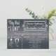 Les futurs invités adoreront cette invitation de réception de mariage après le mariage avec une typographie originale sur tableau noir. Une variété de polices et un design unique pour les mariés rendent cette invitation facile à personnaliser après la célébration du mariage. Utilisez simplement le modèle fourni pour un look totalement personnalisé. La typographie sur tableau noir donne une sensation vintage tout en restant une tendance actuelle. Ne manquez pas cette conception de mariage unique. Souhaitez-vous une carte de réponse, un timbre ou un accessoire de coordination spécial ? Envoyez-moi simplement un e-mail !