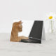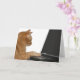 orangefarbene Tablet-Katze, die auf Laptop arbeitet