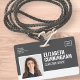Ein modernes und einfaches Abzeichen, das nicht von den wichtigen Details ablenkt. Leicht zu lesen aus der Ferne. Fügen Sie ein individuelles Logo und Angaben zur Firma/zum Krankenhaus/zur Klinik hinzu. Fügen Sie den Namen, das Foto und den beruflichen Titel des Mitarbeiters hinzu. Die Bar der Farbe kann so angepasst werden, dass sie den offiziellen Farben des Unternehmens entspricht. Fügen Sie auf der Rückseite weitere Informationen hinzu, wie z. B. die Rücksendeadresse und die Mitarbeiternummer. Ideal für rechteckige Logos.