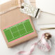 Geschenksticker zum Thema Tennis, Gastgeschenk-Labels und Umschlag Aufkleber mit Tennisplatz auf rosa Untergrund. Text bearbeiten, um ihn zu personalisieren.