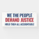 Diese Punkte, die den Ausdruck "Wir, die Menschen fordern Gerechtigkeit" enthalten, sind starke Forderungen nach Fairness, Rechenschaftspflicht und Gleichheit in der Gesellschaft. Sie wurzelt im Geist bürgerlichen Handelns und demokratischer Werte und inspiriere Aktivisten, Fürsprecher und Führungspersönlichkeiten der Gemeinschaft, sich zu vereinen, um für alle wirkliche Gerechtigkeit zu fordern. Ideal für Kundgebungen, Proteste und März verkörpern sie die kollektive Stimme, die gegen Ungerechtigkeit und systemische Ungleichheit vorgeht. Unabhängig davon, ob sie die Reform der Strafgerichtsbarkeit, die Menschenrechte oder die soziale Gerechtigkeit unterstützen, dient diese Formulierung als kühne Erinnerung, dass Gerechtigkeit eine gemeinsame Verantwortung und ein Eckpfeiler einer florierenden Demokratie ist.
