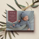 Simple faire-part de naissance moderne dispose d'une seule photo horizontale à fond saigné ou à orientation paysage avec une bannière rose à feuille d'or en haut à gauche, portant le nom du bébé, la date de naissance et les statistiques de naissance. Ajoutez un message personnel à l'arrière, ainsi que trois photos carrés supplémentaires.