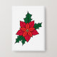Ein rechteckiges Button mit einer weihnachtlich roten Poinsettia, dunkelgrünen Blätter und einer schwarzen Kontur
