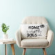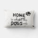 Ce coussin de citation de chien mignon est noir et blanc et a texto maison est où le chien sont avec un dessin de peinture empreinte de patte splatter pour la décoration de maison pour amoureux des chiens partout. Copyright artistique original Ann Powell tous droits réservés.