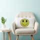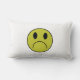 Un coussin avec un visage sur l'avant et de frowney de visage un dos dessus.