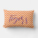 Coussin d'accent Clemson Tiger. Motif Chevron orange et blanc sur l'avant avec une couleur violet solide sur l'arrière du coussin. Le mot "tigres" est dans un avant-plan subtil
