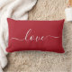 coussin romantique avec un script rouge qui dit "amour". Parfait pour le décor ou le cadeau de la Saint-Valentin.