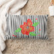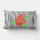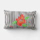 Coussin rayé noir et blanc, avec imprimé de fleurs rouges. L'image de fleur est amovible. L'arrière - plan blanc peut être changé à la couleur de votre choix.