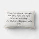 Carreaux inspirés de citation ; ce coussin noir et blanc comporte la citation d'Eleanor Roosevelt : "Rappelez-vous toujours que vous avez non seulement le droit d'être une personne, vous ont une obligation d'être une." Comporte une conception noire abstraite d'arrière - plan sur le dos.