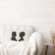 Le coussin avec des silhouettes de l'homme et de femme et de l'arrière est une citation de "fierté et de préjudice". La citation est de Mme Darcy, dire, "complètement et parfaitement et incandescent heureux".