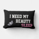 Coussin de style Lumbar montré en noir/rose avec une impression litho d'une couronne de concours et dit I Need My Beauty Sleep. Customisez cet objet ou achetez-le tel quel.