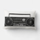 Un coussin avec une image noire et blanche d'une radio là-dessus. Il a une rétro sensation à lui.