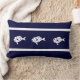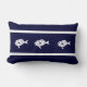 partie du décor sur le thème de l'océan poissons blancs sur le coussin bleu d'un côté et bande bleue et blanc de l'arrière.