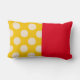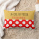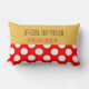 Le coussin de chiroprakteur retiré par amusement en rouge et jaune avec le pois, "coussin officiel de petit somme a retiré le chiroprakteur". De retour du coussin en couleurs coordonnées et grand pois.