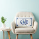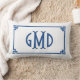 Rectangle Monogramme bleu Clé grecque Lumbar Coussin