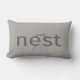Typographie simple avec "Notre nid" sur coussin. Vendu ici en gris mais la couleur arrière - plan peut être changée pour correspondre à votre décoration et à votre style. Conception par Farmhouse Living.