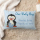 Coussin bienvenu de bébé pour le nouveau venu. Bébés mignons de pingouin. Ajoutez facilement leur nom et information de naissance. Un souvenir vrai ! Ces coussins peuvent aider à soutenir le bébé tout en naturellement alimentant.
