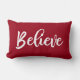 Croire écriture manuscrite | Oreillers Jeu de Vacances en rouge. Design moderne de typographie de ferme par Blackberry Boulevard "Believe" écrit en caractères blancs sur un arrière - plan de couleur rouge solide. Autres couleurs disponibles en magasin. Un coussin parfait accent pour votre décor de maison de vacances.