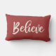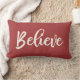 Croire écriture manuscrite | Oreillers de Jeu de Vacances en rouge et crème. Design moderne de typographie de ferme par Blackberry Boulevard "Believe" écrit dans une police de caractères couleur crème sur un arrière - plan de couleur rouge solide. Coordonner avec la collection de Noël côtière. Autres couleurs disponibles en magasin. Un coussin parfait accent pour votre décor de maison de vacances.