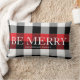 Soyez Joyeux coussin décoratif de vacances avec arrière - plan plaid rouge et gris et script personnalisé avec monogramme dans serif font