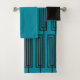 Ce rideau de douche est muni d'un linge noir, d'une serviette turquoise à main et d'une serviette de bain de style Kandinsky, composée de quatre rectangles en continu noir, qui se répètent sur un champ de turquoise. Si vous aimez le design mais préférez différentes couleurs, envoyez-moi un message.