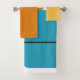 Ce kit de serviettes est doté d'un linge doré, d'une serviette orange à la main et d'une serviette de bain au design moderne du milieu du siècle composé de trois rectangles orange, vert et turquoise, avec un rectangle blanc à l'intérieur. Si vous aimez le design mais préférez différentes couleurs, envoyez-moi un message.