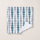 Cet ensemble de serviettes a un design moderne du milieu du siècle de rectangles turquoises et gris arrondi en taille croissante et décroissante courant verticalement sur un champ de blanc.
