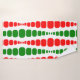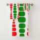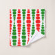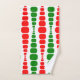 Cet ensemble de serviettes a un design moderne du milieu du siècle de rectangles ronds rouges et verts de taille croissante et décroissante courant verticalement sur un champ de blanc.