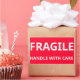 Poignée fragile avec autocollant de soin pour étiquettes, emballage, produits