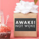 Réveillez-vous ! Sticker LOGO de Woke™ (texte blanc). "Le mot "AWAKE", dans la terminologie sociale, fait référence à un individu qui s'est "réveillé", ou qui est devenu conscient dans le mode de pensée. Cette "conscience" de la pensée se révèle en ce qui concerne les questions politiques et sociales, par des moyens tels que la pensée critique et le discernement. L'individu réveillé a tendance à examiner en profondeur les questions du jour de manière logique et rationnelle, et ne saute pas aux conclusions. L'individu réveillé gravite aussi toujours plus vers une compassion authentique (compassion universelle) et une paix inconditionnelle. Peut-être plus important encore, ceux qui sont vraiment "éveillés" gardent un esprit ouvert à tout. Rien dans ce monde de découvertes et de notions scientifiques ou politiques n'est jamais "réglé". Le savoir humain évolue et se développe à jamais. Enfin, l'individu réveillé comprend qu'il y a deux facettes à tout dans la politique : il y a l'ordre du jour et puis il y a la vérité cachée qui menace l'ordre du jour." Quartz, 2021.