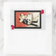 La popularité du pantomime à la fin des années 1980 a provoqué une résurgence du triste clown Pierrot. Voici un autocollant rectangulaire qui correspond à notre invitation "Pierrot’s Masquerade" avec l’image d’un damier gris et blanc et l’image vintage d’un Pierrot masqué et de son amour Columbine sur un arrière - plan abstrait rouge et blanc avec une bordure noire. Voir invitation, enveloppe, étiquette cadeau, étiquette et papier d'emballage correspondant. Voir l'ensemble de la collection Tubular 80s Sticker dans les INVITATIONS | Section Stickers & Étiquettes.