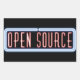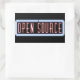 Panneau rouge blanc et bleu néon qui dit open source. Lettres brillantes, informatique, programmation, geek, nerdy.