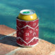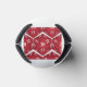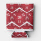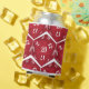 Gemustertes Design mit einem roten 20-seitigen Würfel.
