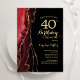 Rot, Schwarz und Gold haben 40. Geburtstag Party Einladung. Elegantes modernes Design mit Aquarellfarben-marmorgeode Hintergrund, Imitats Glitzer Gold und Typografie Skript-Schriftart. Die trendige Einladungskarte eignet sich perfekt für eine stilvolle Damenfeier. Gedruckte Zazzle-Einladungen oder Sofortdownload digitaler Druckvorlage.
