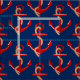 Red Anchors Nautical Pattern on Dark Blue Stoff