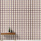 A tartan pattern in neutral, warm colors. Red, blue, and cream-colored bands run accross a muted pale tan background. A very fall aesthetic with a mix of rich and muted colors.