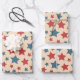 Red and Blue Stars, 4th of July, Beige Background Geschenkpapier Set