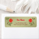 Ein benutzerdefiniertes Rücksendelabel mit rot-dunkelroten Schriftzeichen und Standardbriefen, zentriert zwischen Vintager Kunst der Gänsehönen und kurbelnder Dekoration in Rot und Gold auf goldenem Hintergrund, restauriert aus einem antiken Manuskript.