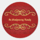 Red and Gold Damask Swirls with Name Runder Aufkleber