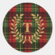 Red And Green Plaid Tartan Pattern With Monogram Runder Aufkleber