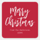 Red and White Brush Script Merry Christmas Quadratischer Aufkleber