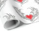 Artistisch bemalt rotes Herz mit Engelsflügeln grau, mit schwarz glatten Konturen dekoriert.