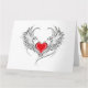 Artistisch bemalt rotes Herz mit Engelsflügeln grau, mit schwarz glatten Konturen dekoriert.