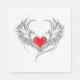 Artistisch bemalt rotes Herz mit Engelsflügeln grau, mit schwarz glatten Konturen dekoriert.