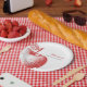 Servieren Sie Ihre Gäste mit spielerischen Tellern aus rotem Apfel. Die skurrilen Apfelmotive und die mit Kokette inspirierten Motive schaffen eine reizvolle und reizvolle Atmosphäre für Ihre Dusche.